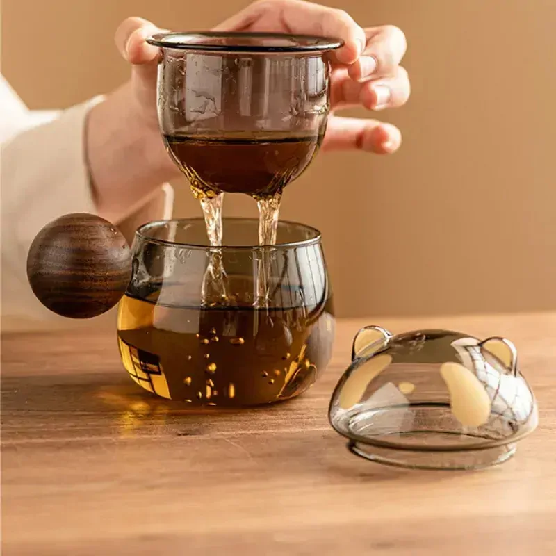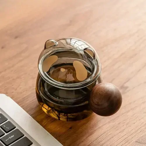الصفحة الرئيسية اثاث كوب الباندا الزجاجي بمقبض الجوز